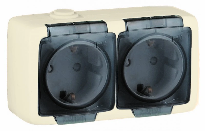 Hegel Альфа IP44 наруж Слоновая кость РА16-251-01 Розетка с/з двойная, брызгозащищенная