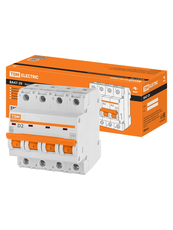 Автоматический выключатель TDM ВА47-29 - 4P - 2A - D - 4.5kA - 4M - 400В