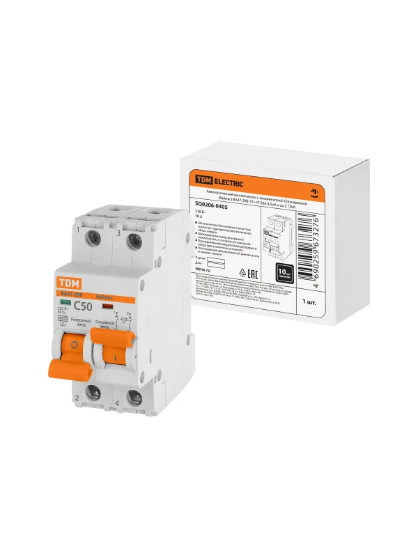 TDM Авт. выкл. с мех. блок. (байпас) ВА47-29Б 1Р+1Р 50А 4,5кА х-ка C