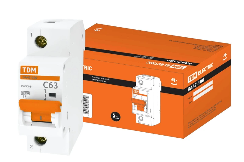 Автоматический выключатель TDM ВА47-100 - 1P - 63A - C - 10kA - 1,5M - 400В