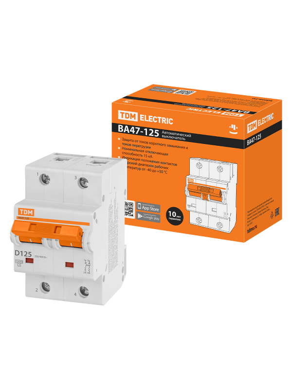 Авт. выкл. ВА47-125 2Р 125А 15кА х-ка D TDM