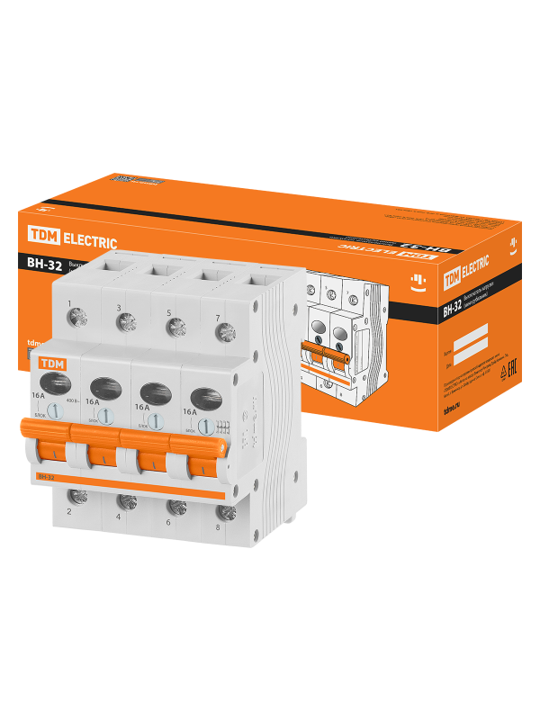 Выключатель нагрузки (мини-рубильник) ВН-32 4P 16A TDM