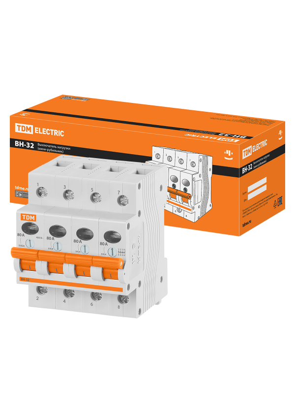 Выключатель нагрузки (мини-рубильник) ВН-32 4P 80A TDM