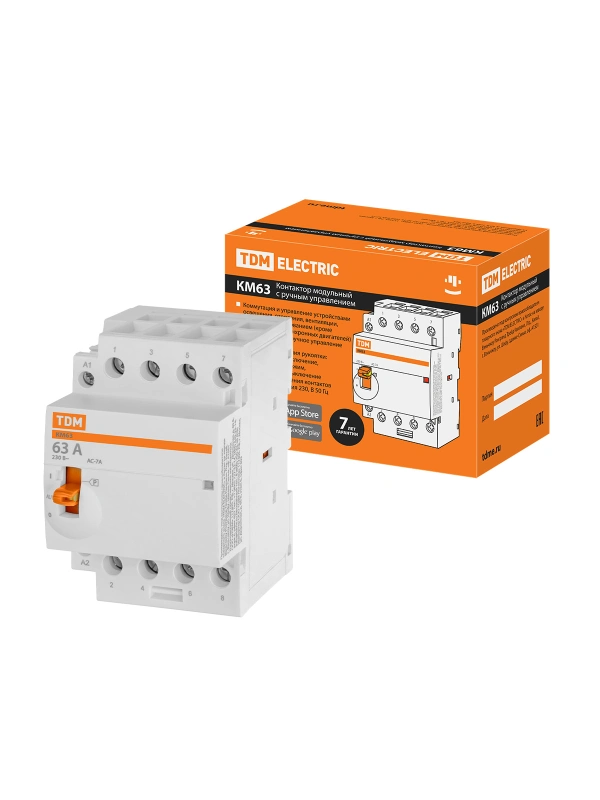 Контактор модульный с ручным управлением КМ63/4-63 4НО 230В АС TDM