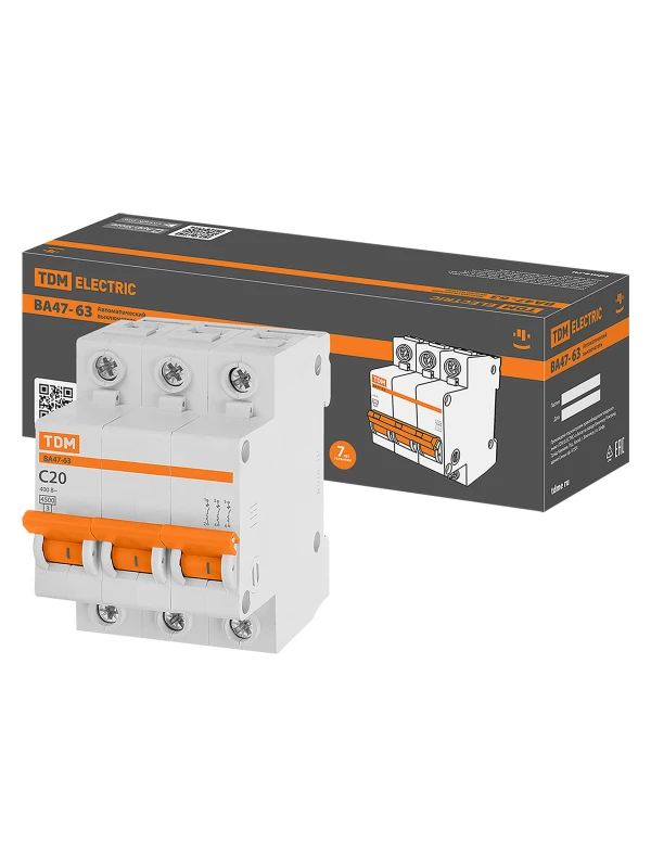 Автоматический выключатель TDM ВА47-63 - 3P - 20A - C - 4.5kA - 3M - 400В