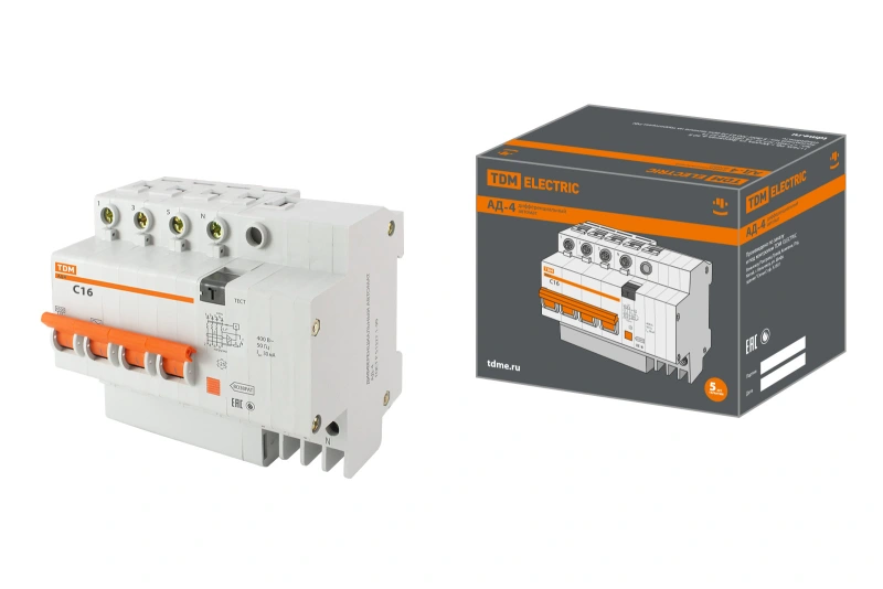 Дифференциальный автомат (АВДТ) TDM АД-2 - 3P+N 16A (AC) 30 mA Тип C 4.5 kA