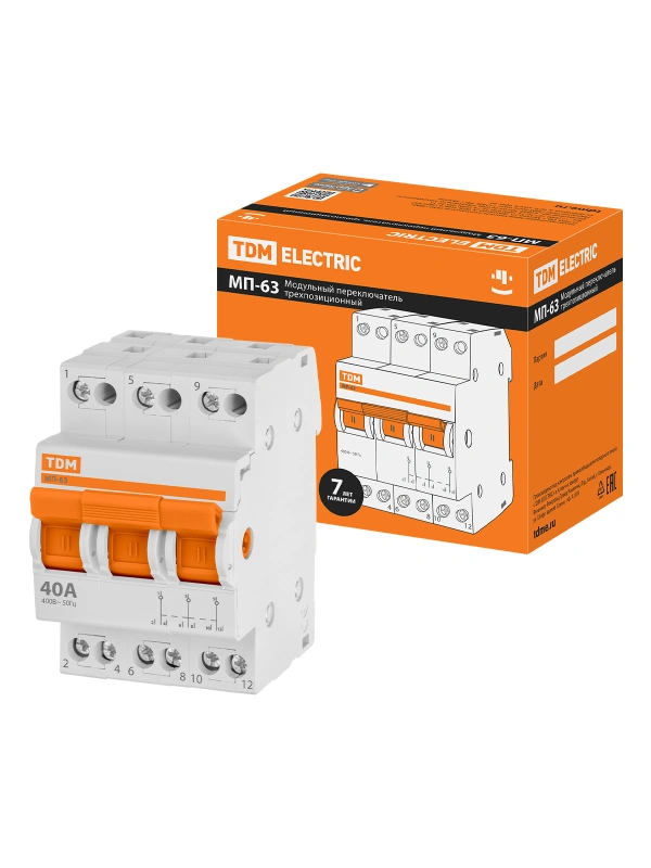Модульный переключатель трехпозиционный МП-63 3P 40А TDM
