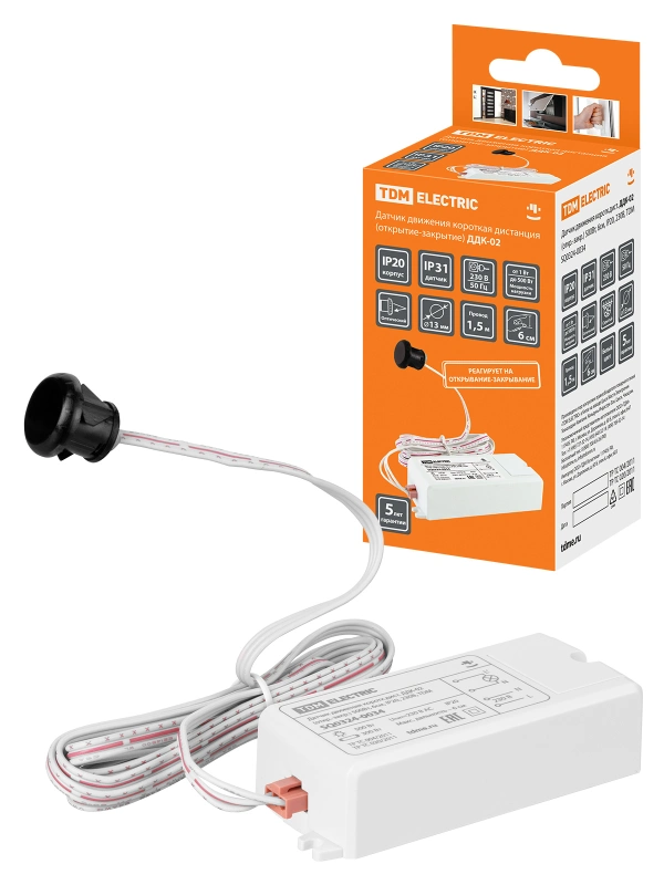 Датчик движения коротк.дист. ДДК-02 (откр.-закр.) 500Вт, 6см, IP20, 230В, TDM