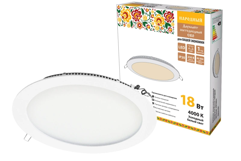 Светильник ультратонкий встраиваемый светодиодный "Даунлайт НАРОДНЫЙ" СВО (белый) 18 Вт 4000К