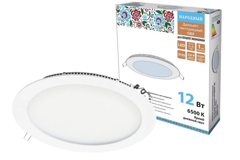 Светильник ультратонкий встраиваемый светодиодный "Даунлайт НАРОДНЫЙ" СВО (белый) 12 Вт 6500К