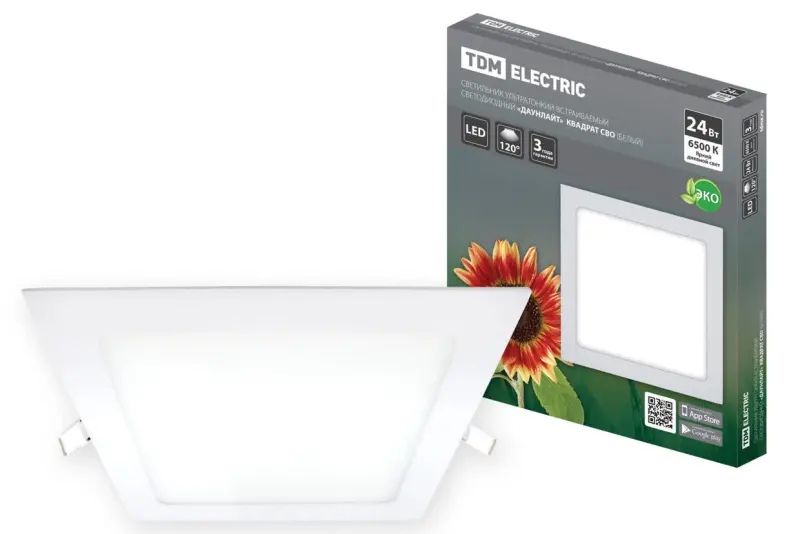 Светильник ультратонкий встраиваемый светодиодный "Даунлайт" квадрат СВО (белый) 24 Вт 6500К TDM