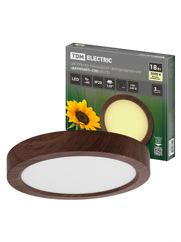 Светильник накладной светодиодный круг "Даунлайт" СПО (венге) 18 Вт 225*32 мм 3000К TDM