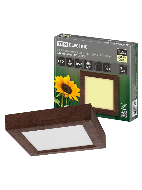Светильник накладной светодиодный квадрат "Даунлайт" СПО (венге) 12 Вт 170*170*32 мм 3000К TDM