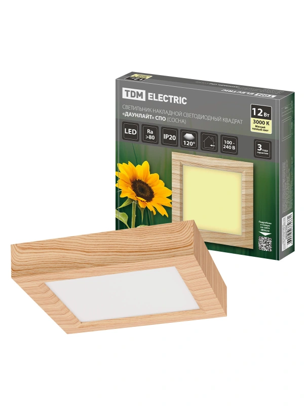Светильник накладной светодиодный квадрат "Даунлайт" СПО (сосна) 12 Вт 170*170*32 мм 3000К TDM