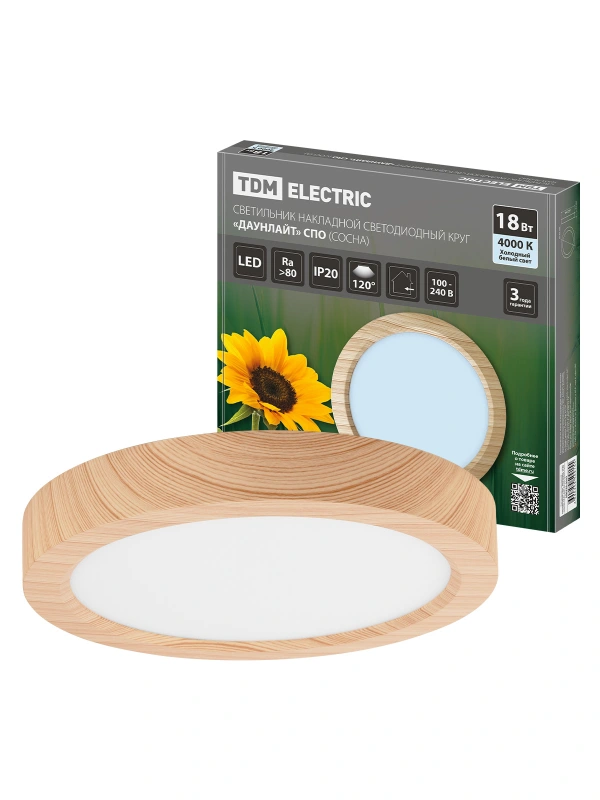 TDM Светильник накладной светодиодный круг "Даунлайт" СПО (сосна) 18 Вт 225*32 мм 4000К