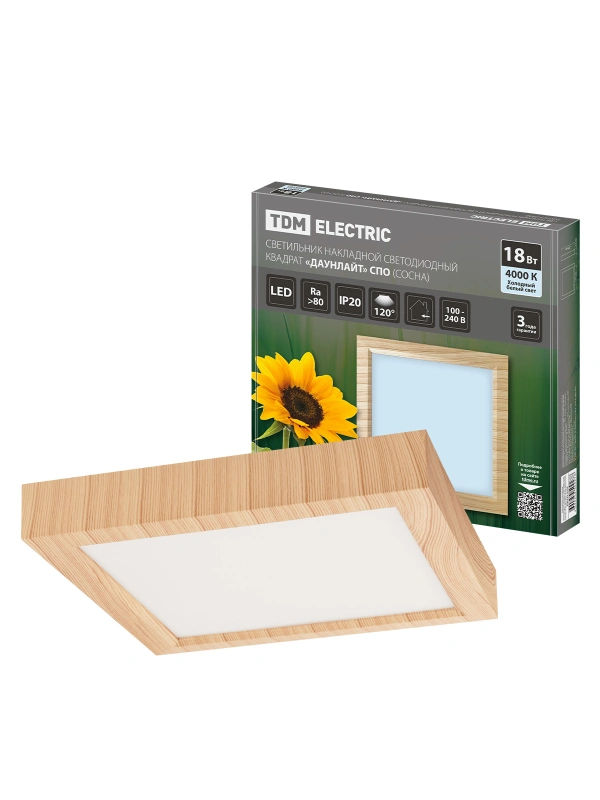TDM Светильник накладной светодиодный квадрат "Даунлайт" СПО (сосна) 18 Вт 225*225*32 мм 4000К