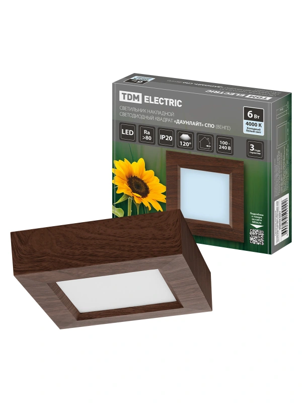 TDM Светильник накладной светодиодный квадрат "Даунлайт" СПО (венге) 6 Вт 120*120*32 мм 4000К
