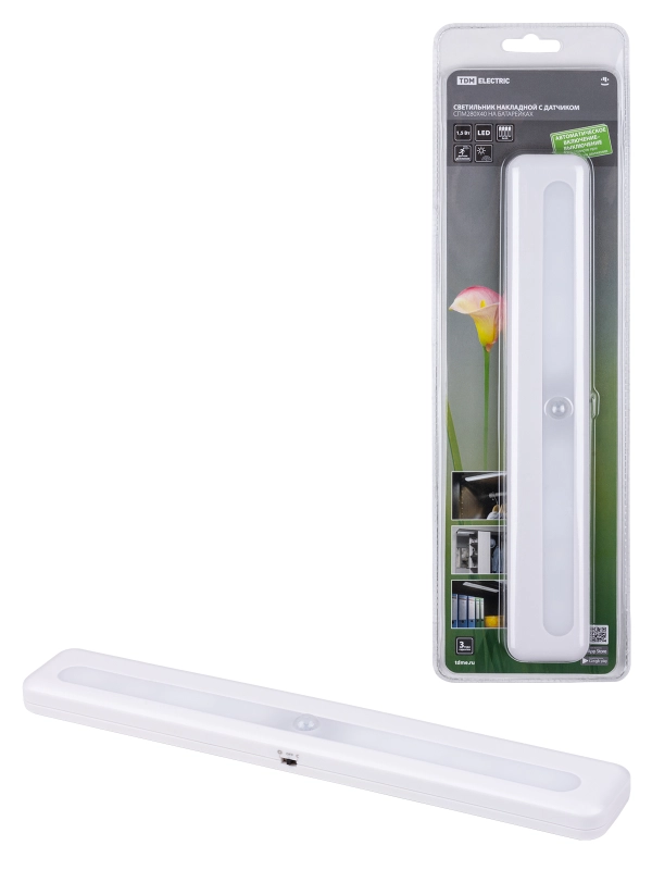 Светильник накладной светодиодный 280х40, 1,5 Вт, 4хАА, дат. движ. и освещ., TDM