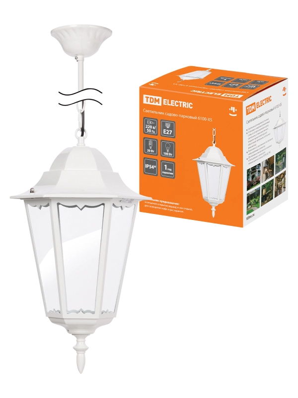 Светильник 6100-25 садово-парковый шестигранник, 100Вт, подвес,белый