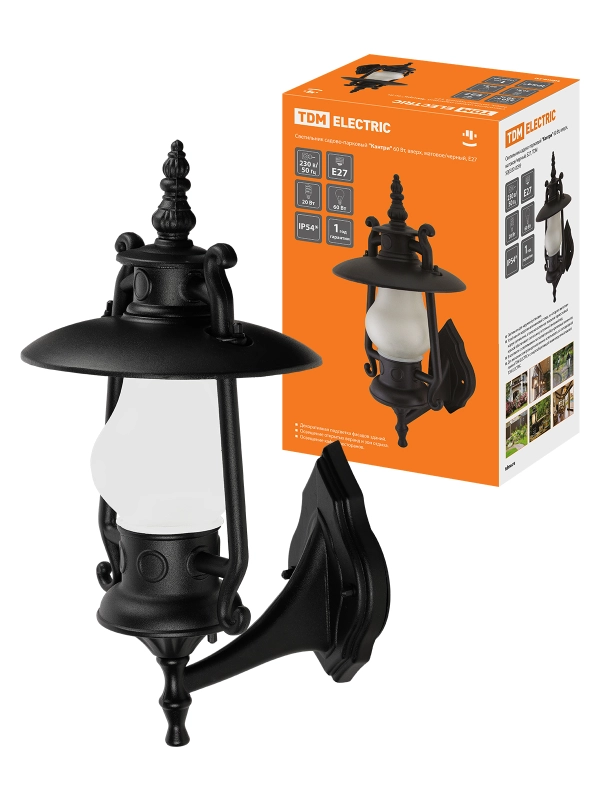 Светильник садово-парковый "Кантри" 60 Вт, вверх, матовое/черный, Е27, TDM