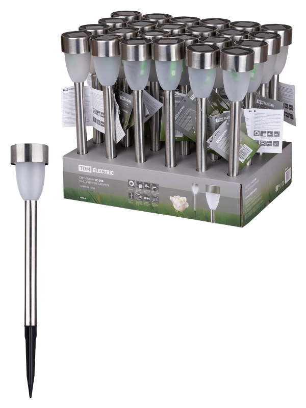 Светильник СС-298 на солнечных батареях, сталь, 5,5х37cм, ДБ, TDM