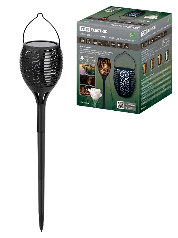 Светильник СП-351 "Факел 2" на солнечной батарее, 12х12х79 см, пластик, черный, 54 LED, TDM
