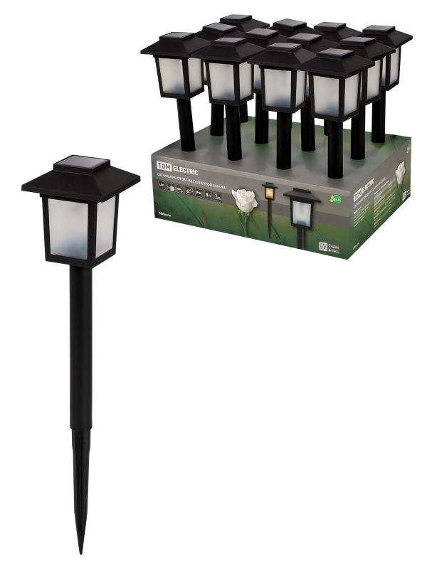 Светильник СП-337 на солнечной батарее, 7х7х34 см, пластик, черный,10 LED, ДБ, TDM