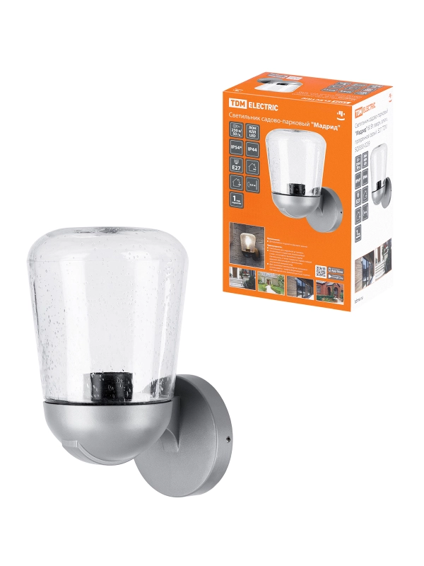 Светильник садово-парковый "Мадрид" 60 Вт, вверх, алюм., прозрачное/серый, Е27, TDM