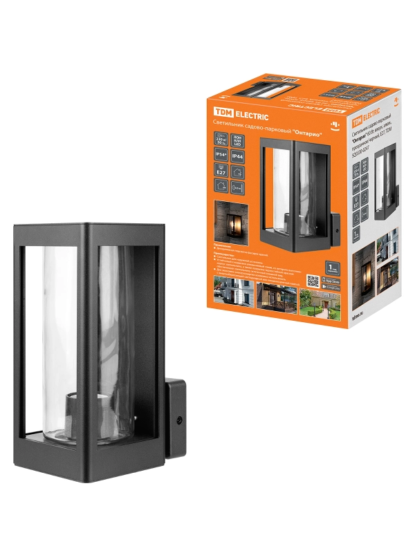 Светильник садово-парковый "Онтарио" 60 Вт, вверх, алюм., прозрачное/черный, Е27, TDM