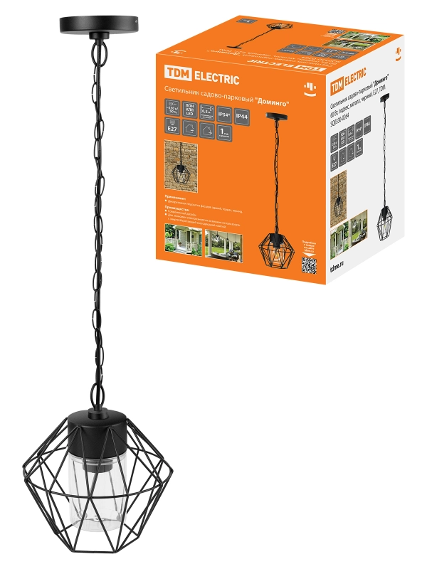 Светильник садово-парковый "Доминго" 60 Вт, подвес, металл, черный, Е27, TDM