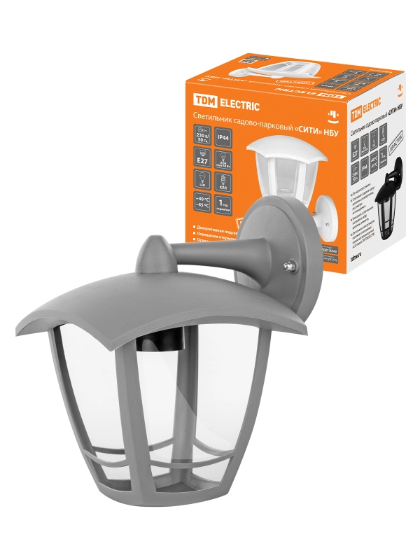 Светильник садово-парковый "СИТИ" НБУ 07-60-002 У1 4-х гранник настенный вниз серый TDM