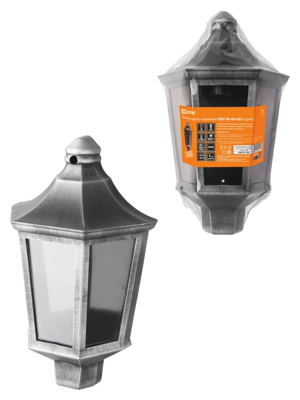 Светильник садово-парковый НБУ 06-60-003 настенный, пластик, расс. поликарбонат, серебро TDM