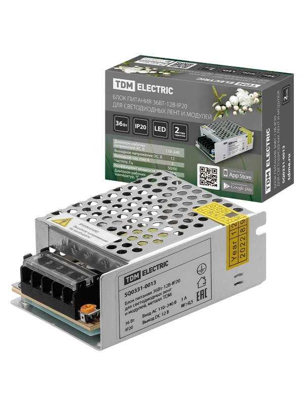 Блок питания 36Вт-12В-IP20 для светодиодных лент и модулей, метал TDM