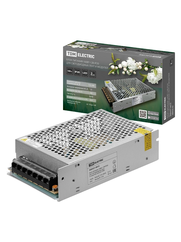 Блок питания 100Вт-12В-IP20 для светодиодных лент и модулей, метал TDM