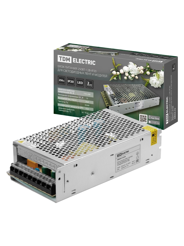 Блок питания 250Вт-12В-IP20 для светодиодных лент и модулей, металл TDM