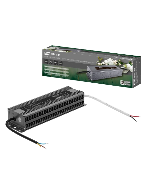 Блок питания 200Вт-12В-IP67 для светодиодных лент и модулей DC 12В, металл TDM