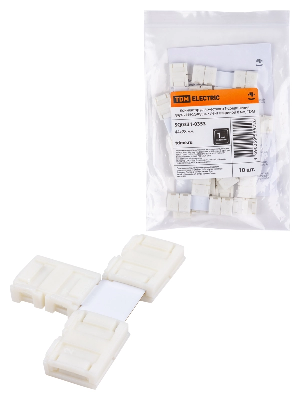 Коннектор для жесткого T-соединения двух светодиодных лент шириной 8 мм, TDM