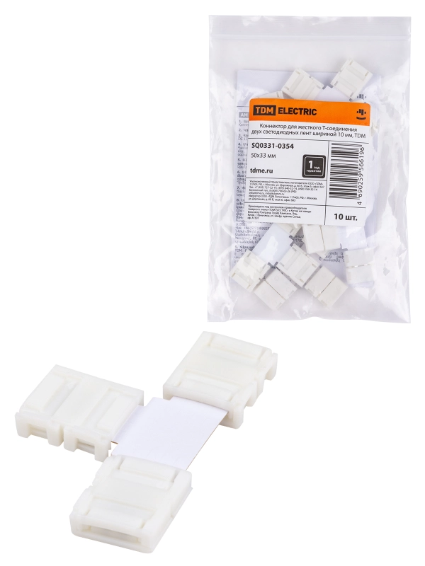 Коннектор для жесткого T-соединения двух светодиодных лент шириной 10 мм, TDM