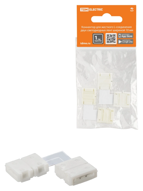 TDM Коннектор для жесткого L-соединения двух светодиодных лент шириной 10 мм, (уп. 2 шт),