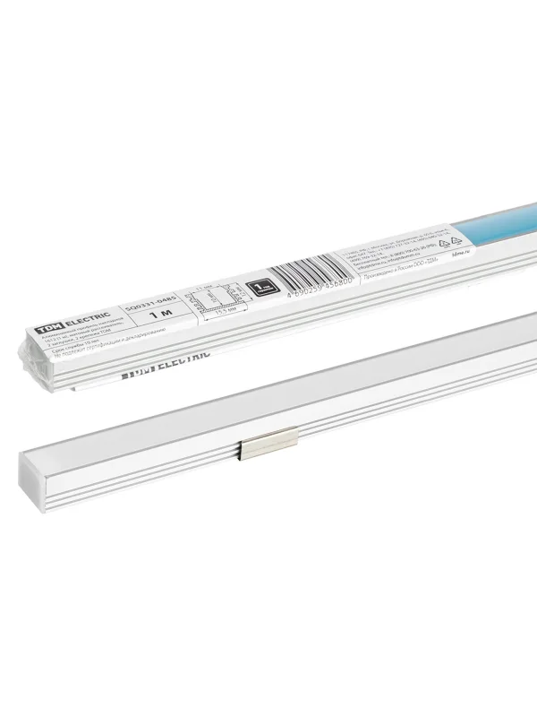 Алюминиевый профиль накладной 1612 (1 м), матовый рассеиватель, 2 заглушки, 2 крепежа TDM