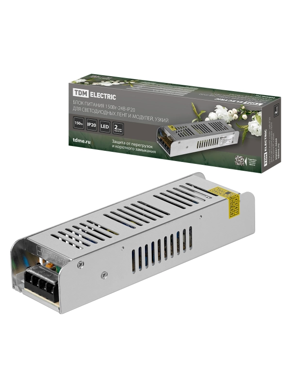 Блок питания 150Вт-24В-IP20 для светодиодных лент и модулей, металл, узкий, TDM