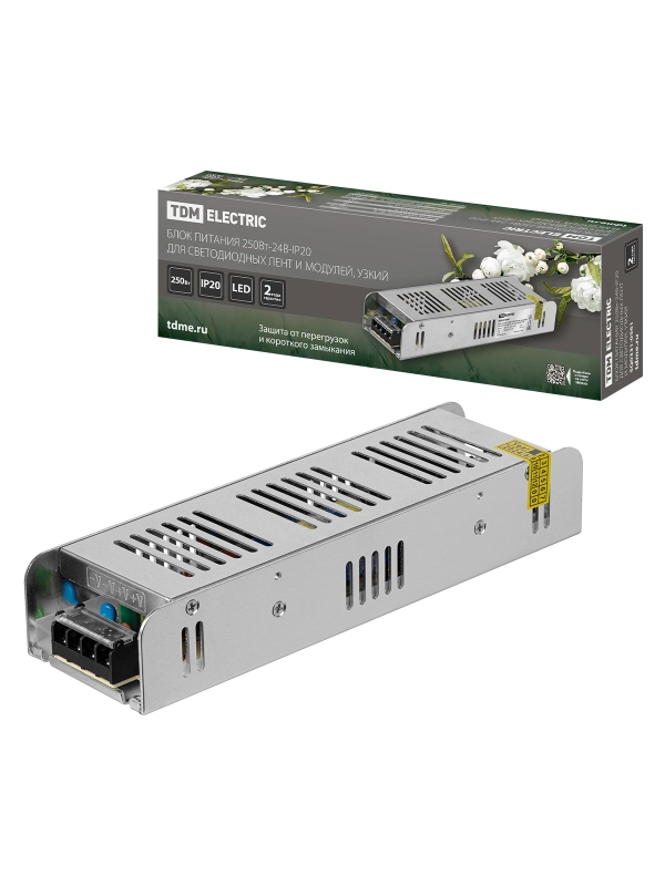 Блок питания 250Вт-24В-IP20 для светодиодных лент и модулей, металл, узкий, TDM