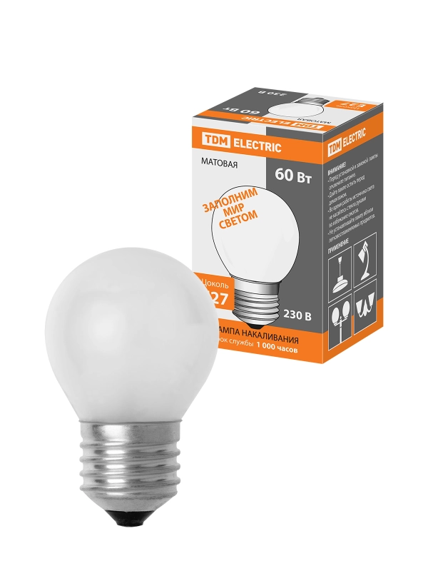 Лампа накаливания "Шар матовый" 60 Вт-230 В-Е27 TDM