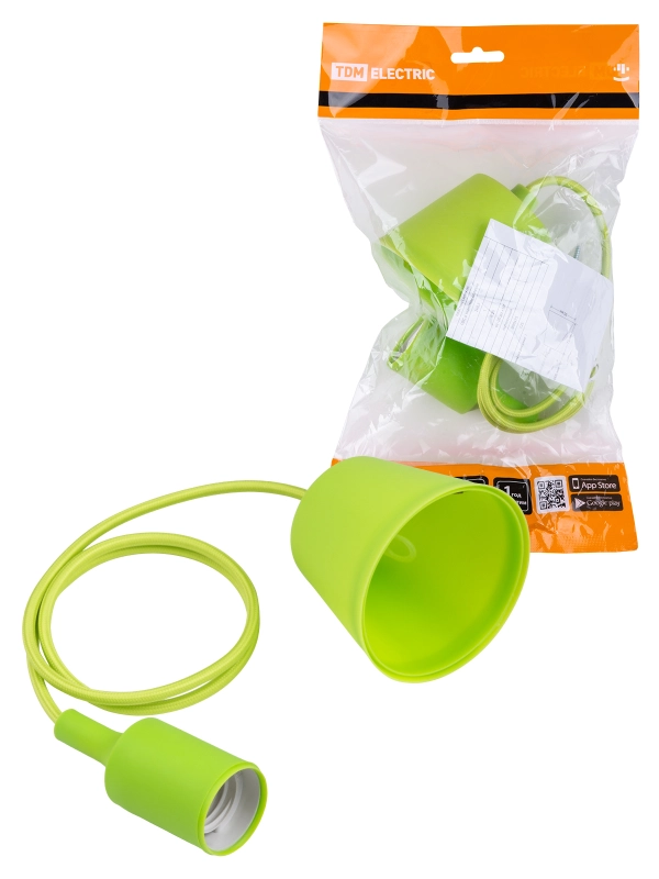Патрон пластиковый Е27 с подвесом 1 м, зеленый TDM