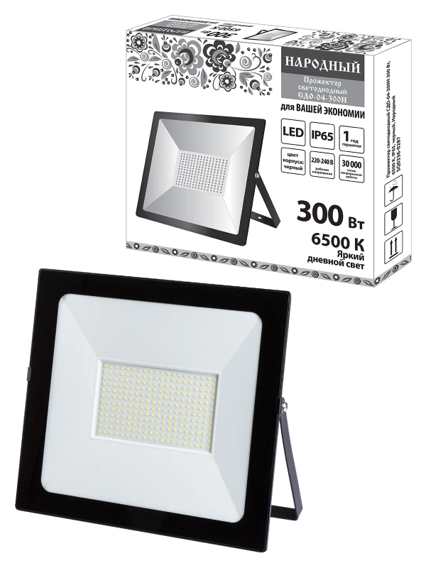 Прожектор светодиодный СДО-04-300Н 300 Вт, 6500 К, IP65, черный, Народный