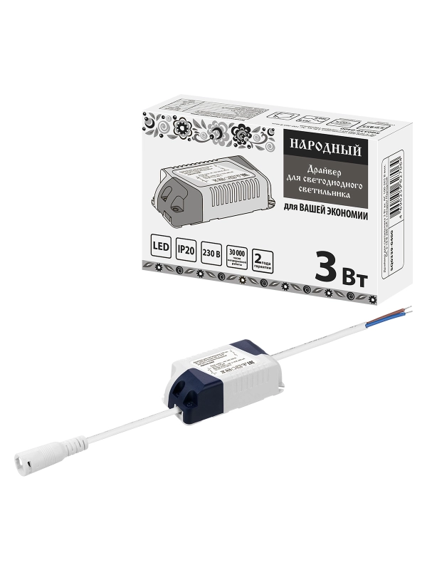 Драйвер для светильника 3 Вт вх. AC 100-265В вых. DС 3-10В 280 мА с гнездом Народный