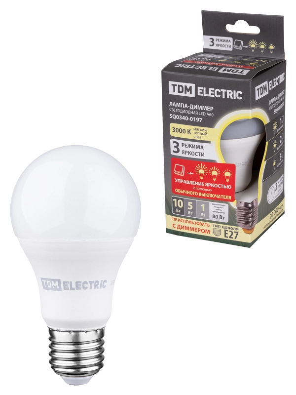 Лампа светодиодная А60 - 10 Вт-230 В -3000 К–E27 "Лампа-ДИММЕР" TDM
