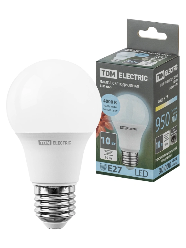 Лампа светодиодная А60 10 Вт, 230 В, 4000 К, E27 TDM