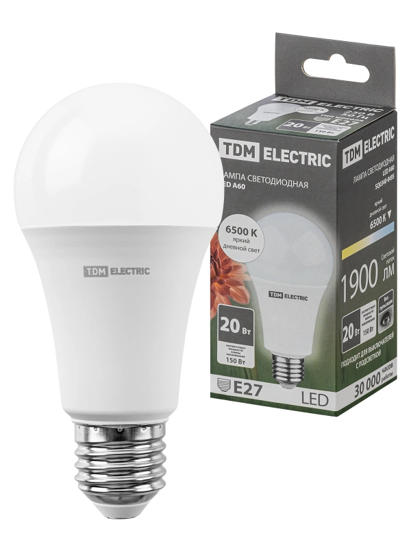 Лампа светодиодная А60 20 Вт, 230 В, 6500 К, E27 TDM