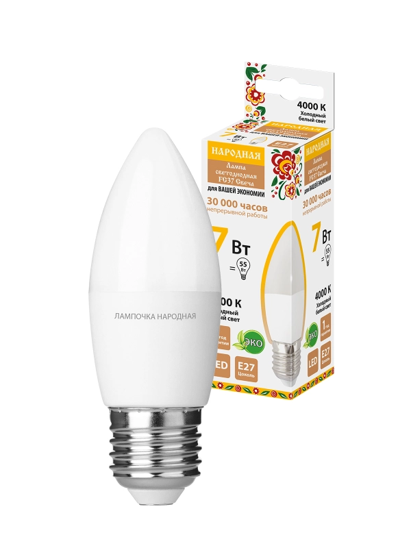 Лампа светодиодная FС37-7 Вт-230 В -4000 К–E27 Народная